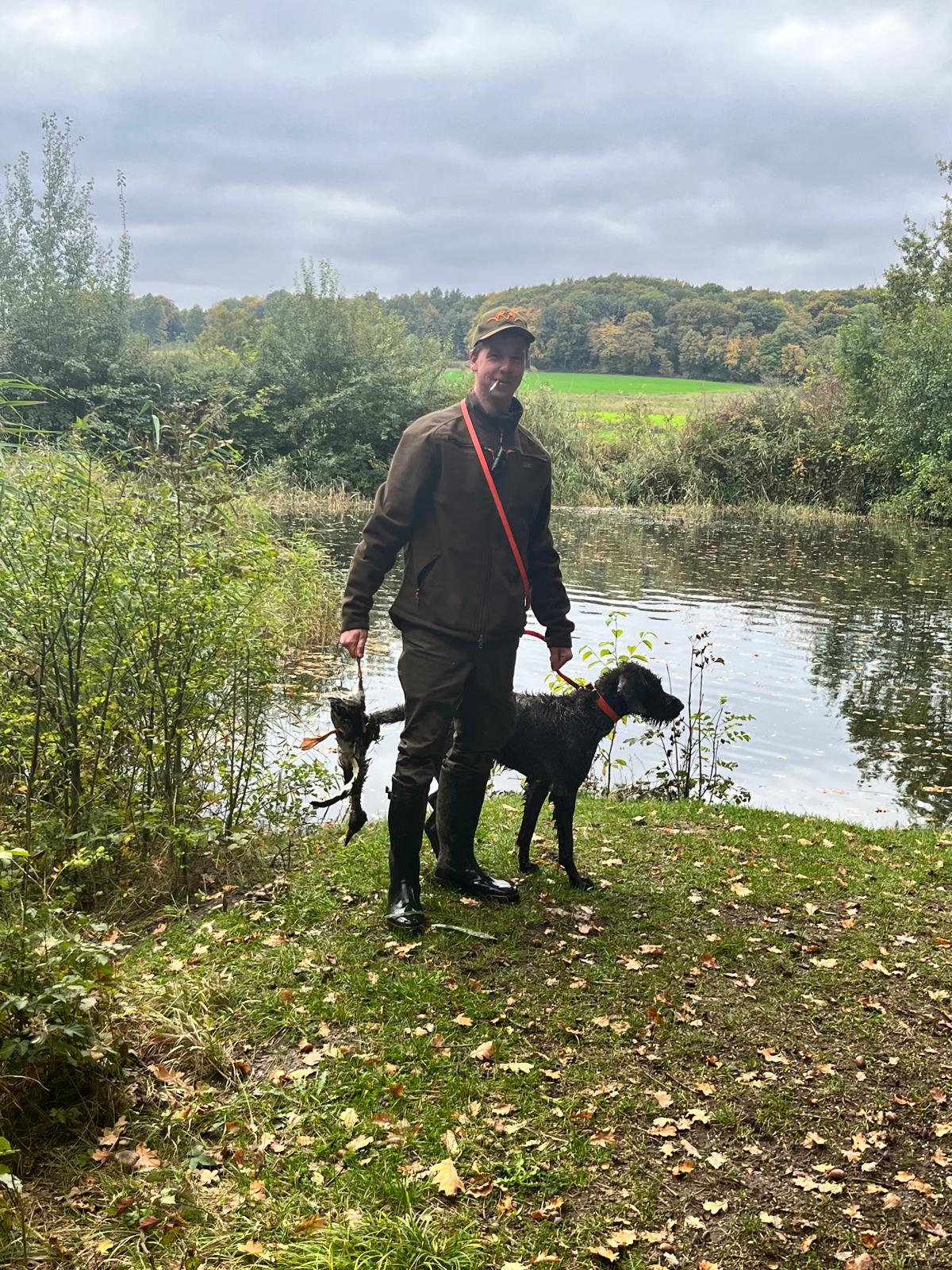 Pepe vom Schnepfenmoor mit hervorragenden 193 Punkten, geführt von Benedikt Malke als Erstlingsführer.